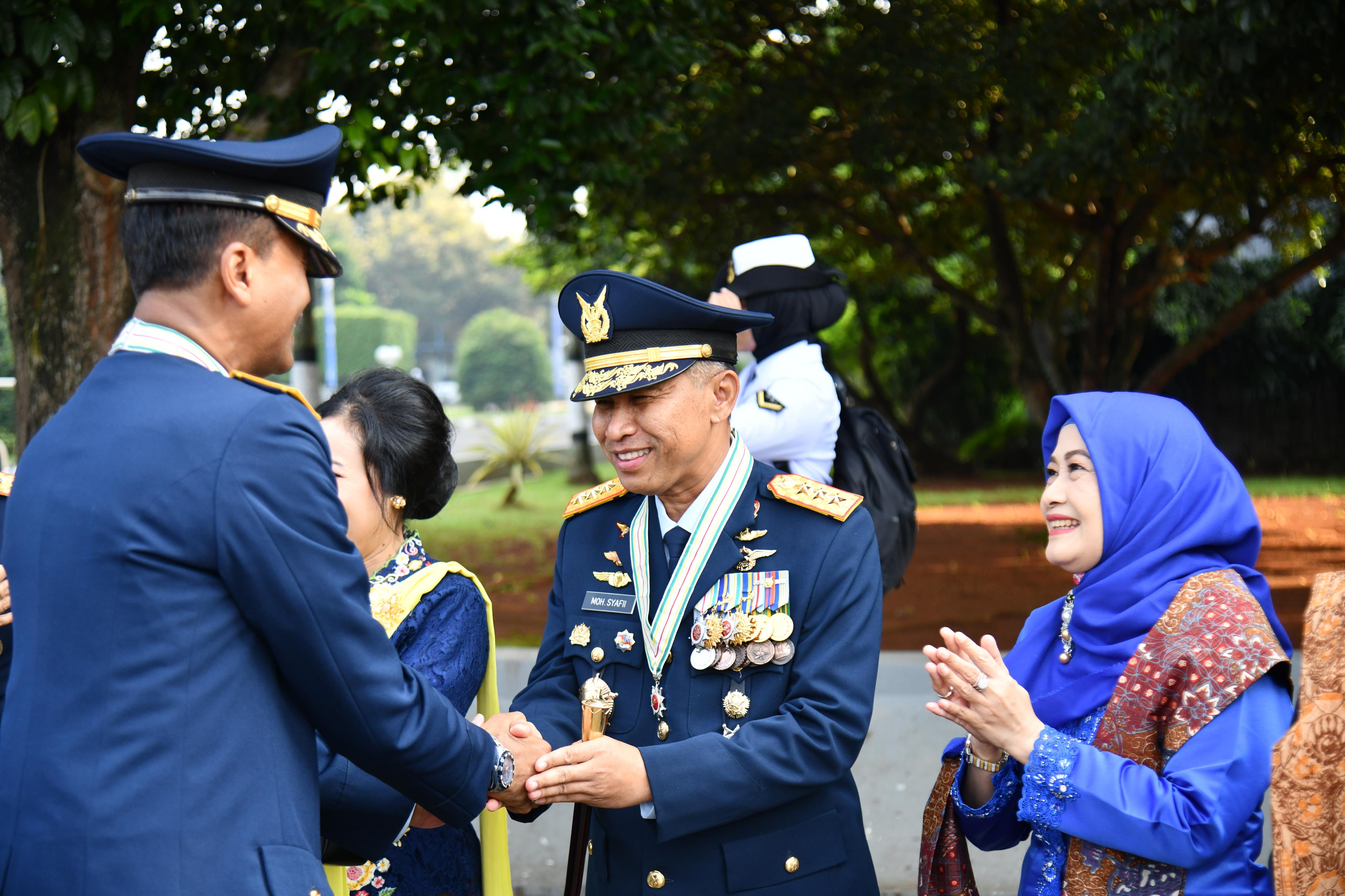 Upacara tersebut juga dihadiri oleh Wakasau, Kapuspen AU, Dankodiklatau, jajaran Petinggi TNI AU, instansi terkait dan satuan-satuan TNI-Polri.