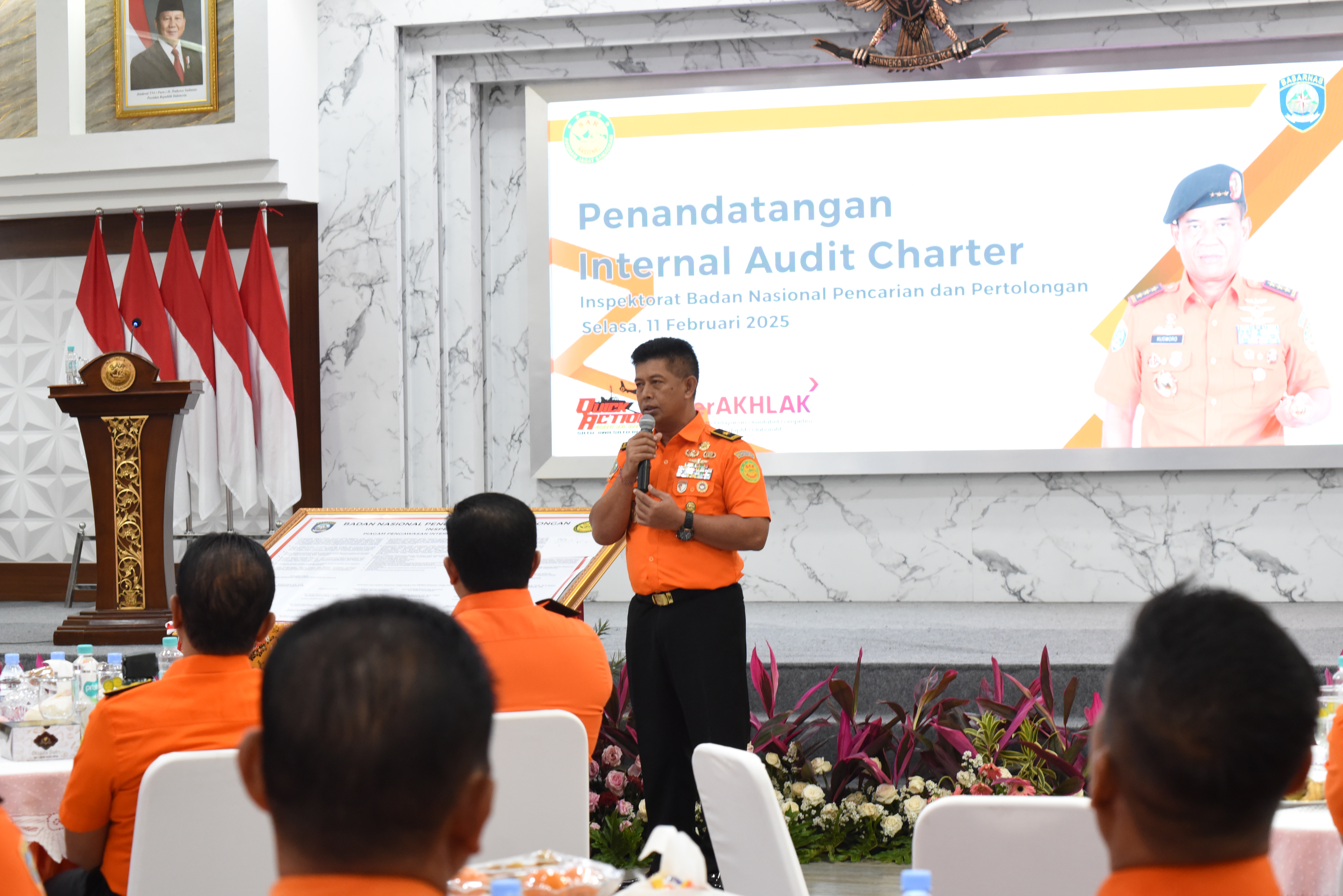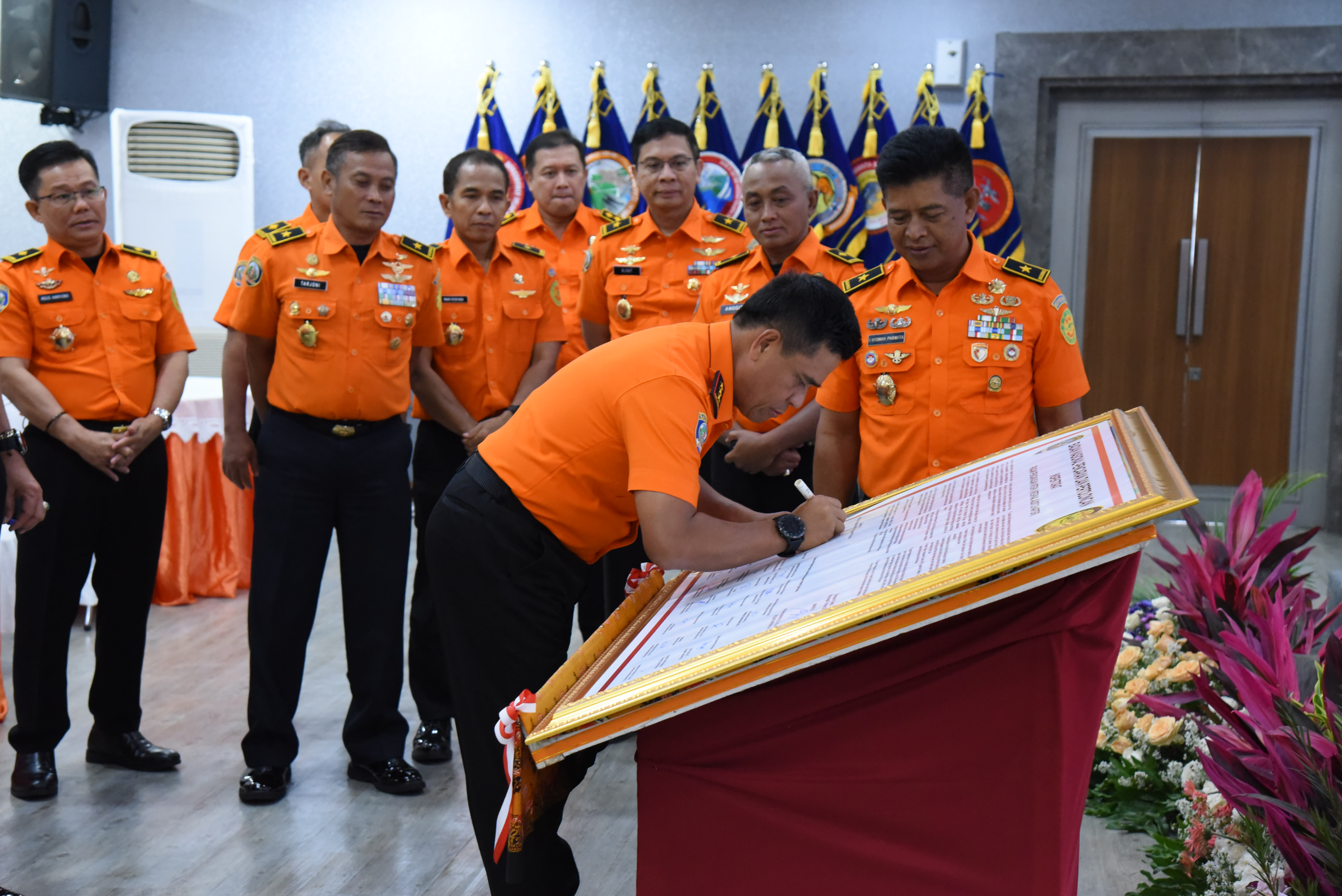 Kepala Badan Nasional Pencarian dan Pertolongan (Basarnas) Marsekal Madya TNI Kusworo beserta Pimpinan Tinggi Madya dan Pratama menandatangani Piagam Audit Charter. Penandatanganan tersebut dilaksanakan pada rangkaian kegiatan Rapat Kerja Basarnas Tahun 2025, Selasa (11/2/2025).