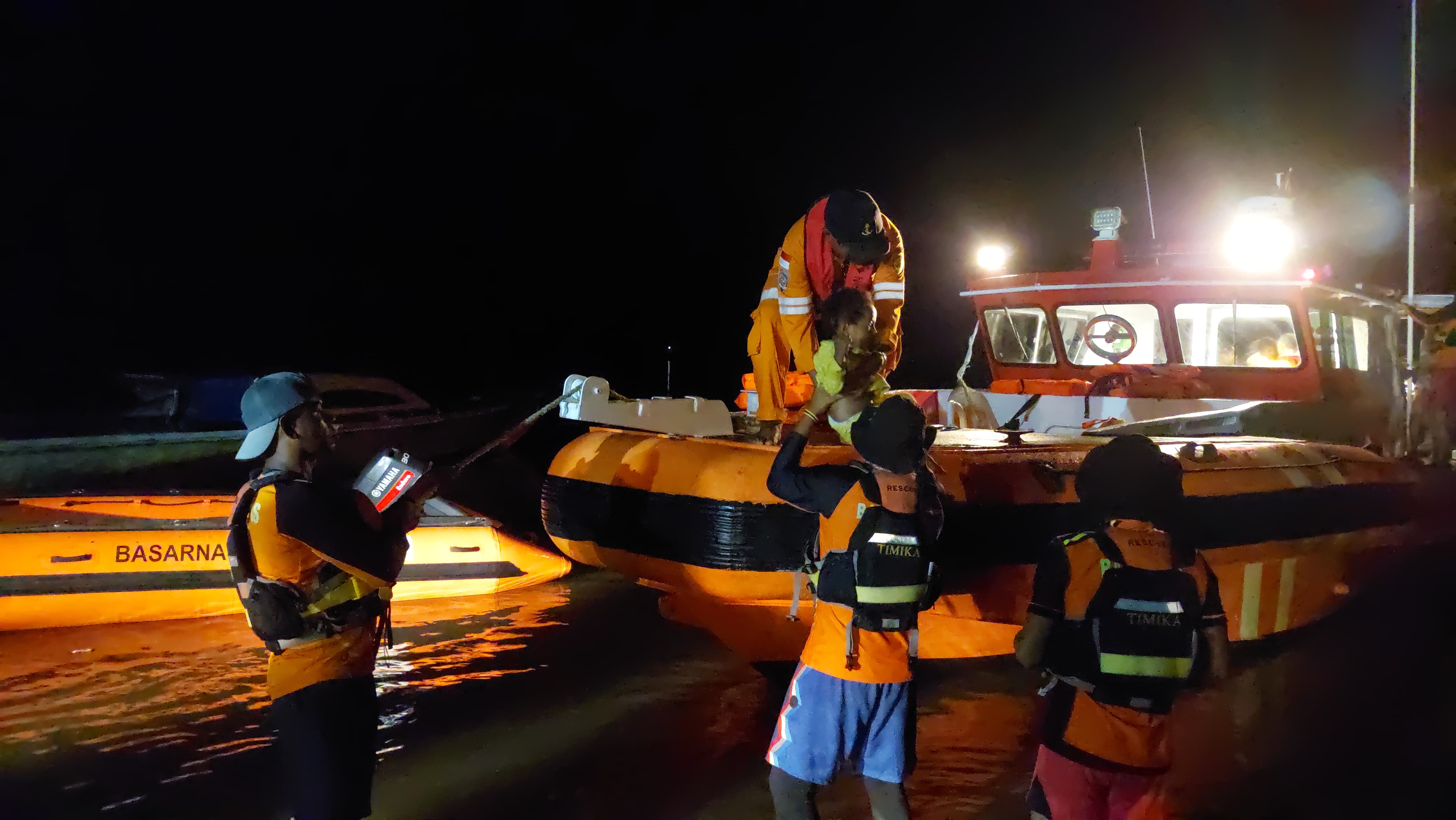 Mendapati laporan tersebut Kepala Kantor SAR Timika I Wayan Suyatna melalui Kasubsie Operasi dan Siaga SAR Timika Charles Y. Batlajery langsung memberangkatkan tim rescue menggunakan 2 unit perahu karet dan 1 unit RBB menuju lokasi kejadian untuk melakukan evakuasi.