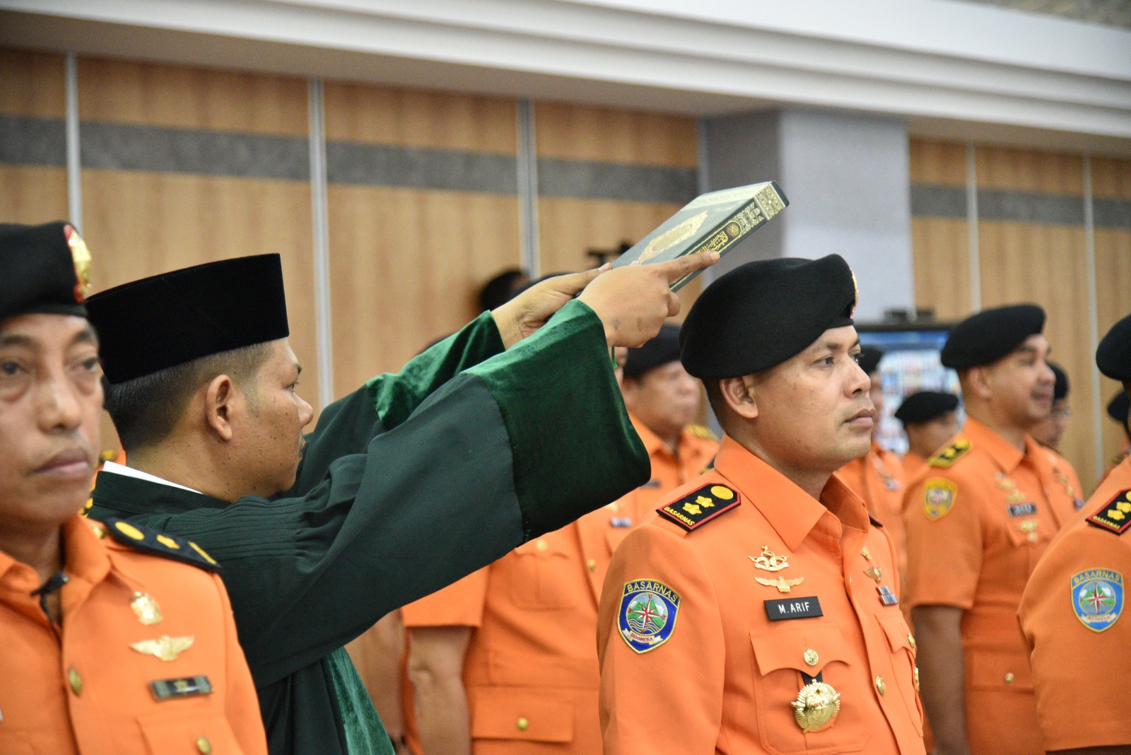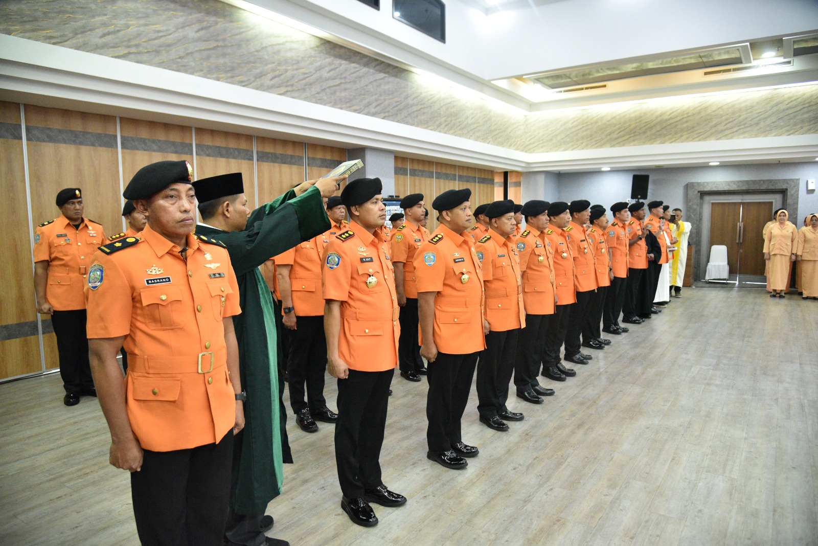 Pelantikan dan pengambilan sumpah jabatan berlangsung di Ruang Serba Guna Gedung Basarnas lantai 15, dihadiri oleh Pejabat Eselon I dan II serta diikuti seluruh Kepala UPT secara langsung melalui video conference.