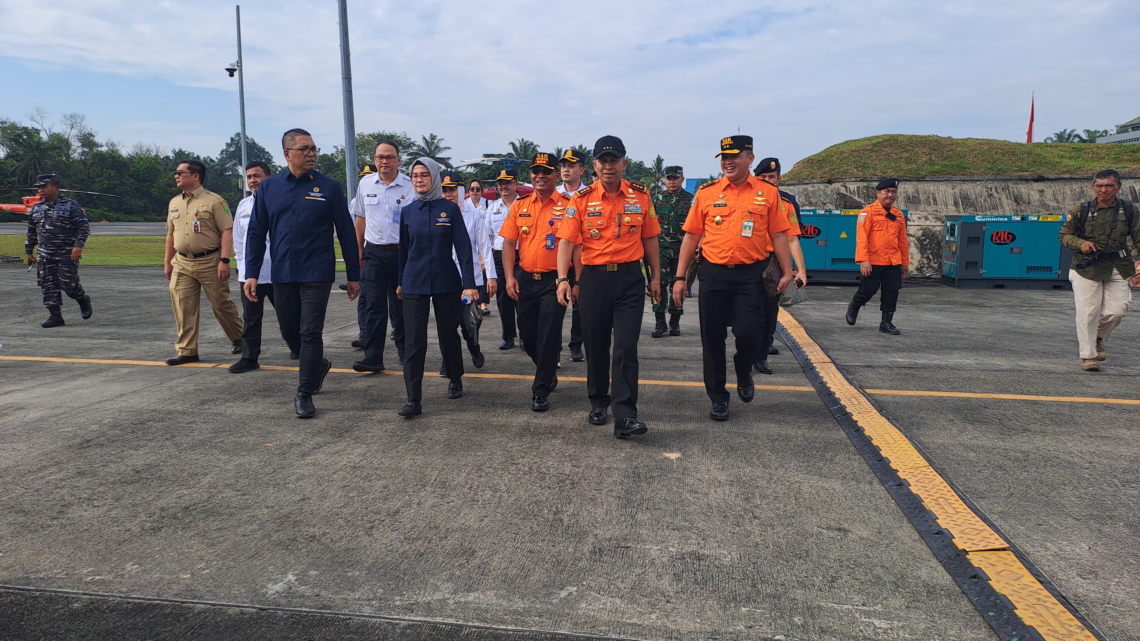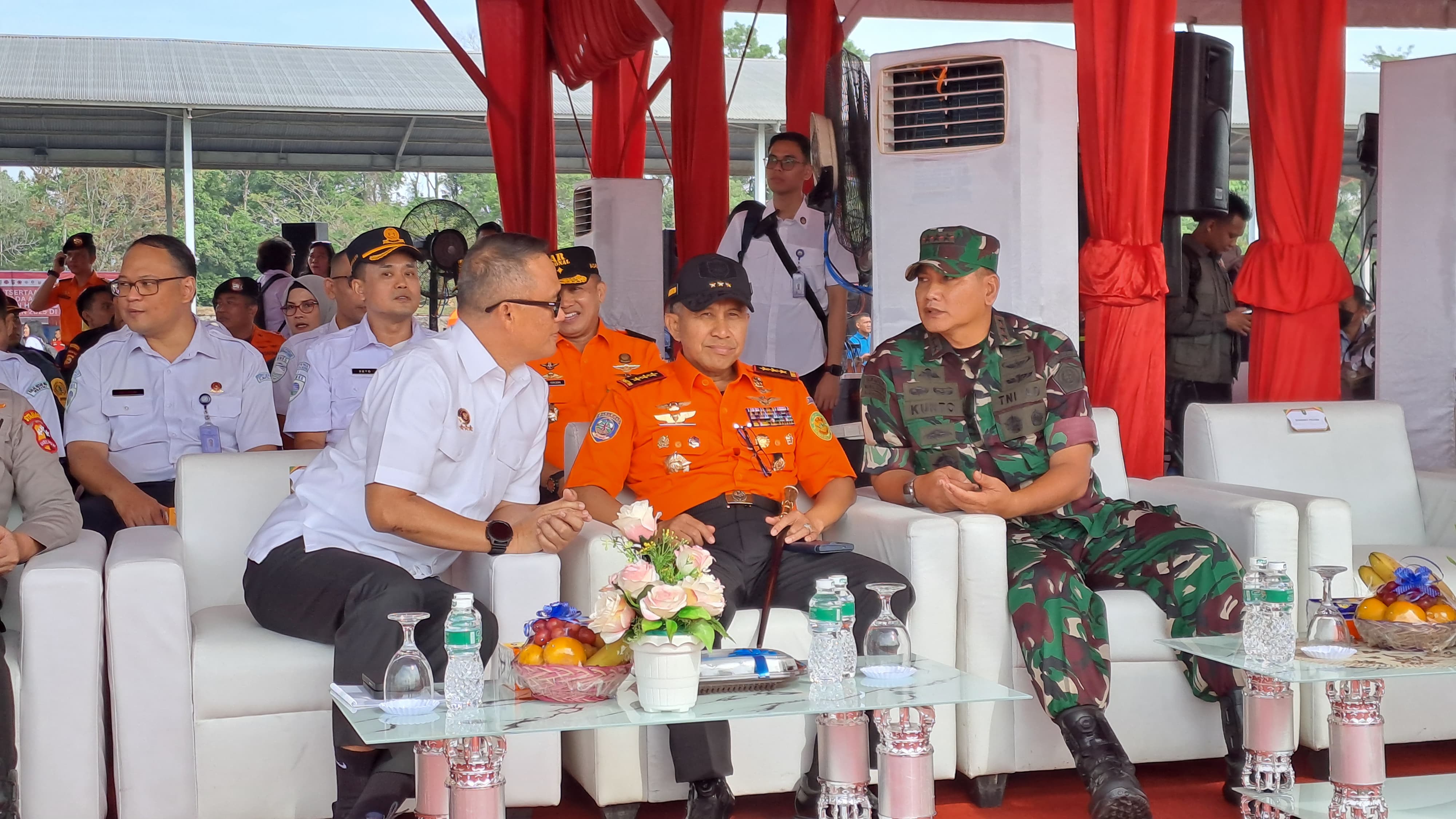 Kepala Basarnas Marsekal Madya TNI Mohammad Syafii menghadiri Apel Kesiapsigaan Kebakaran Hutan dan Lahan (Karhutla) yang diselenggarakan di Lanud Roesmin Nurjadin, Pekanbaru, Selasa (29/4/2025).