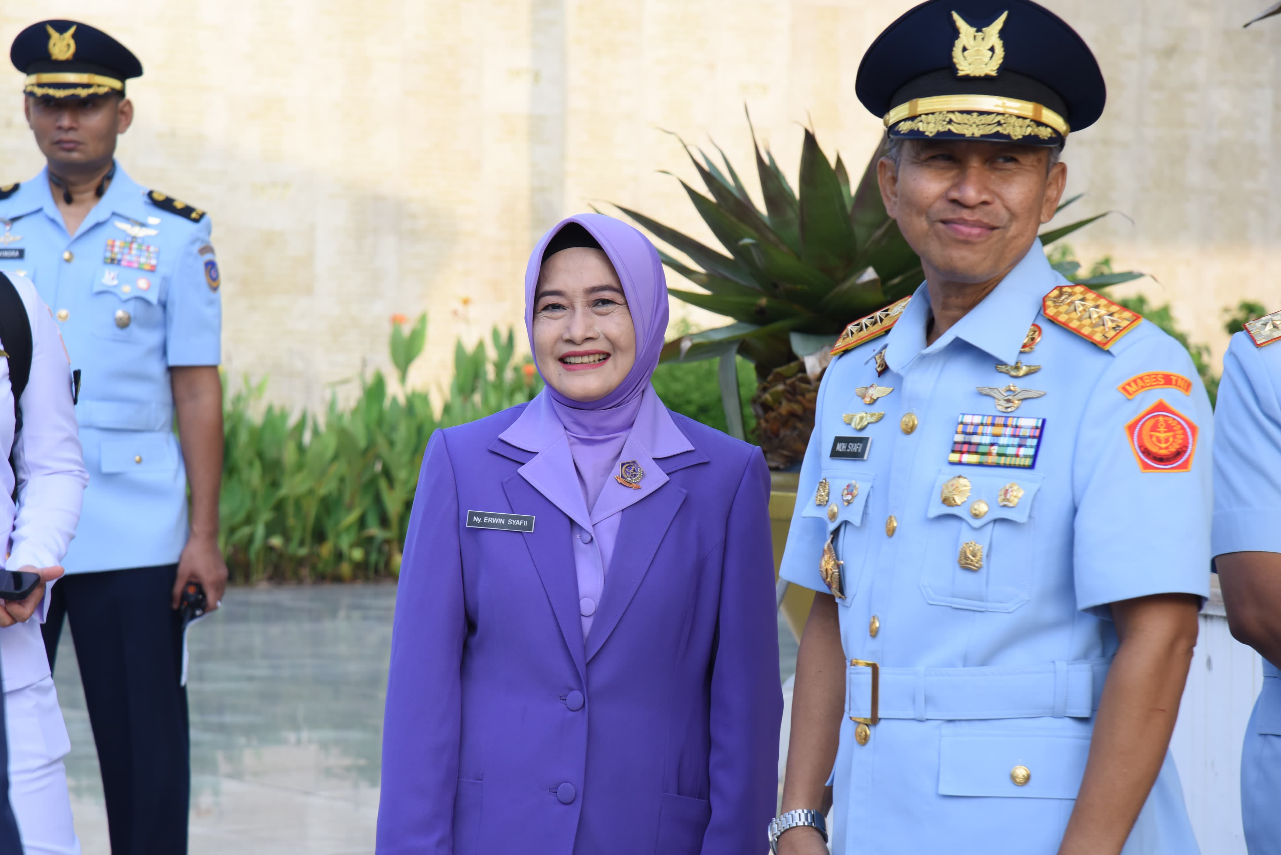 Kepala Basarnas Marsekal Madya TNI Mohammad Syafii didampingi Ketua DWP sekaligus Ketua IKKT Penghubung 05 Basarnas Ibu Erwin Rahmawati Syafii menghadiri upacara ziarah nasional di Taman Makam Pahlawan (TMP) Kalibata, Jakarta Selatan, dalam rangka peringatan Hari Ulang Tahun ke-79 TNI Angkatan Udara, Selasa (08/04/2025).