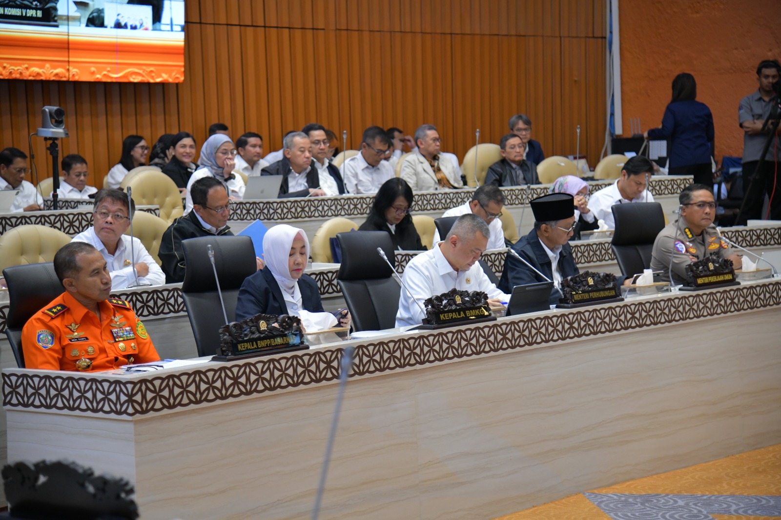 Kepala Basarnas Marsekal Muda TNI Mohammad Syafii bersama Menteri Perhubungan Dudy Purwagandhi, Kepala BMKG Dwikorita Karnawati, Menteri Pekerjaan Umum Dody Hanggodo, Kabagops Korlantas Kombes Pol Aries Syahbudin mengikuti rapat dengar pendapat (RDP) dengan Komisi V DPR di Kompleks Parlemen, Senayan, Jakarta, Selasa (11/3/2025). Rapat yang dipimpin langsung Ketua Komisi V DPR RI Lasarus membahas kesiapan infrastruktur dan transportasi mudik Lebaran 1446 H/ 2025.