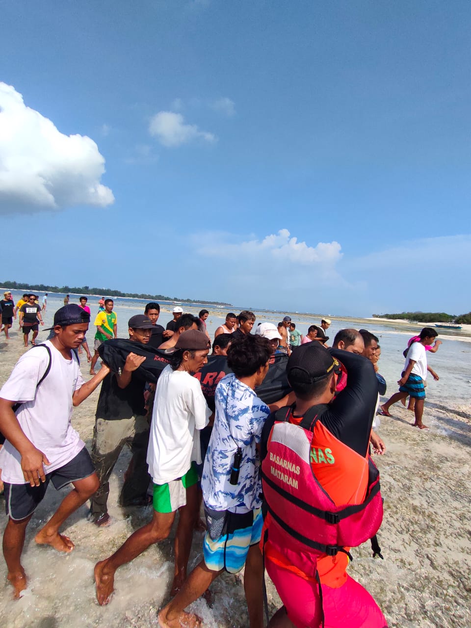 Jarak penemuan sekitar 300 meter dari lokasi kejadian. Korban atas nama M. Aripin (35) asal Gili Meno, Lombok Utara. Setelah tim SAR gabungan melakukan evakuasi, korban diserahkan ke Kadus Gili Meno. "Korban merupakan juru mudi dari salah satu perahu yang bertabrakan itu," tambahnya.