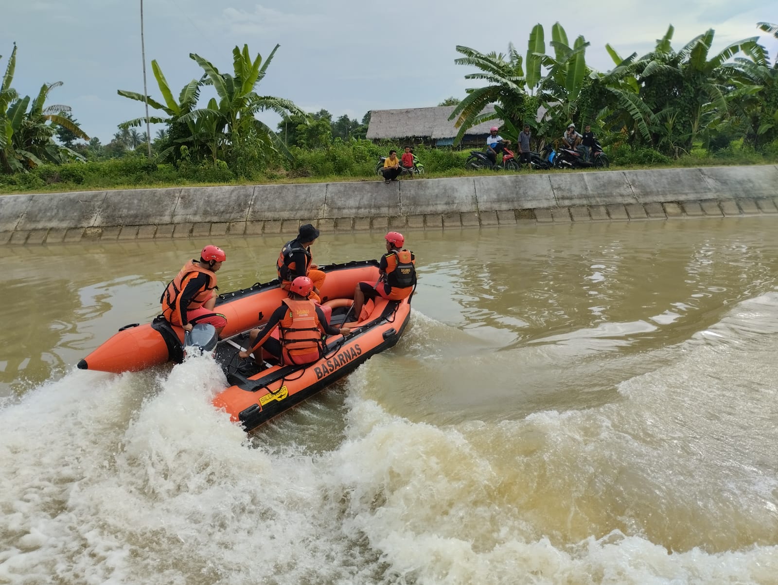 Kantor Pencarian dan Pertolongan Banten menerima informasi tersebut pukul 14.05 wib langsung menurunkan Tim Rescue ke lokasi dan langsung berkoordinasi dengan Tim SAR Gabungan untuk melakukan pencarian terhadap korban. Pencarian dibagi menjadi 2 SRU, SRU 1 melakukan penyisiran dengan menggunakan Rubber boat disekitar LKP sejauh 2KM dan SRU 2 melakukan penyisiran darat disekitar sungai sejauh 5KM. Hasil pencarian hari pertama pada TW 0201 1500 s/d TW 1700 korban terseret arus an. Muslik ditutup dengan hasil nihil dan akan dilanjutkan esok hari.